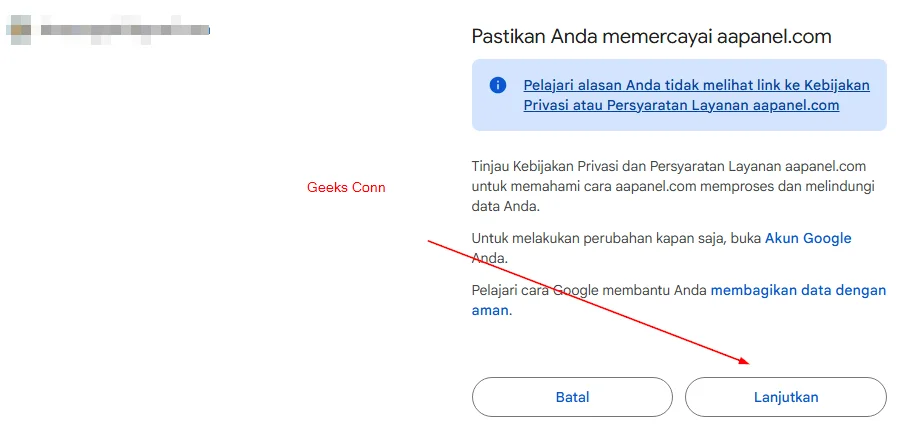 Menghubungkan Google Drive aaPanel ke account Google Drive